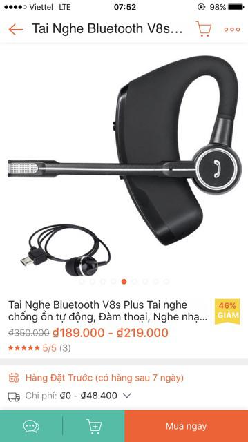 Tai nghe bluetooth nghét tai v8s plus không dây chống ồn tự động tai nghe bluetooth đàm thoại nghe nhạc hay.