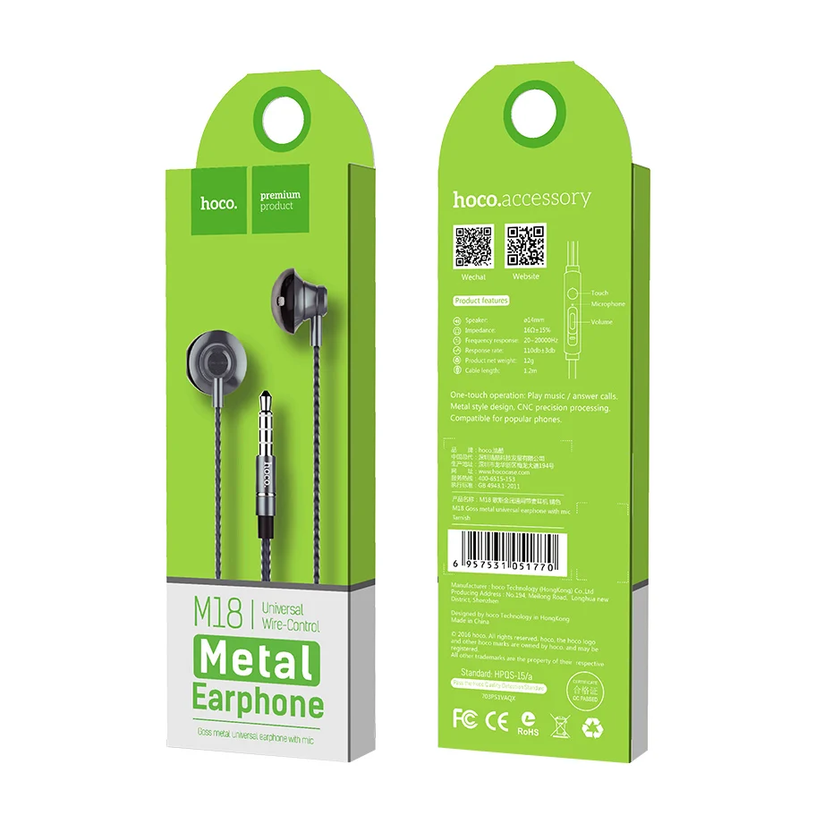 Hoco M18 35mm Wired Stereo Metal Earphone Hi Fi Headset With Mic