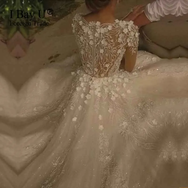 Блестящие кружевные исламские Свадебные платья с объемным цветком ...