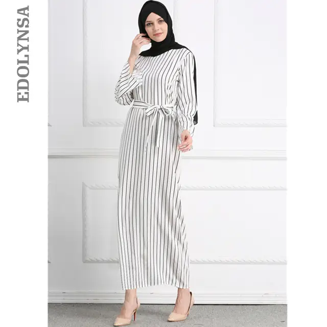 2020 взрослая хиджаб абайя мода белая полоса пояса длинное ...