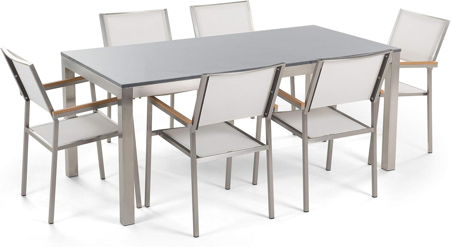 Set Di Tavolo E 6 Sedie Da Giardino In Acciaio Granito E Fibra Tessile Bianca Piano Singolo Grigio Lucido 180cm Grosseto Beliani Amazon It Casa E Cucina