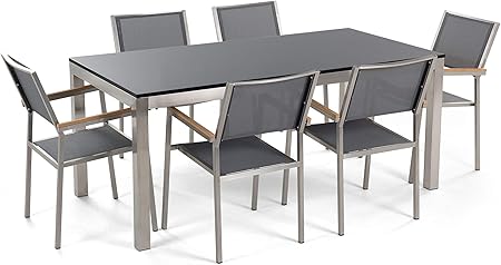 Set Di Tavolo E 6 Sedie Da Giardino In Acciaio Basalto E Fibra Tessile Grigia Piano Singolo Nero Lucido 180cm Grosseto Beliani Amazon It Casa E Cucina