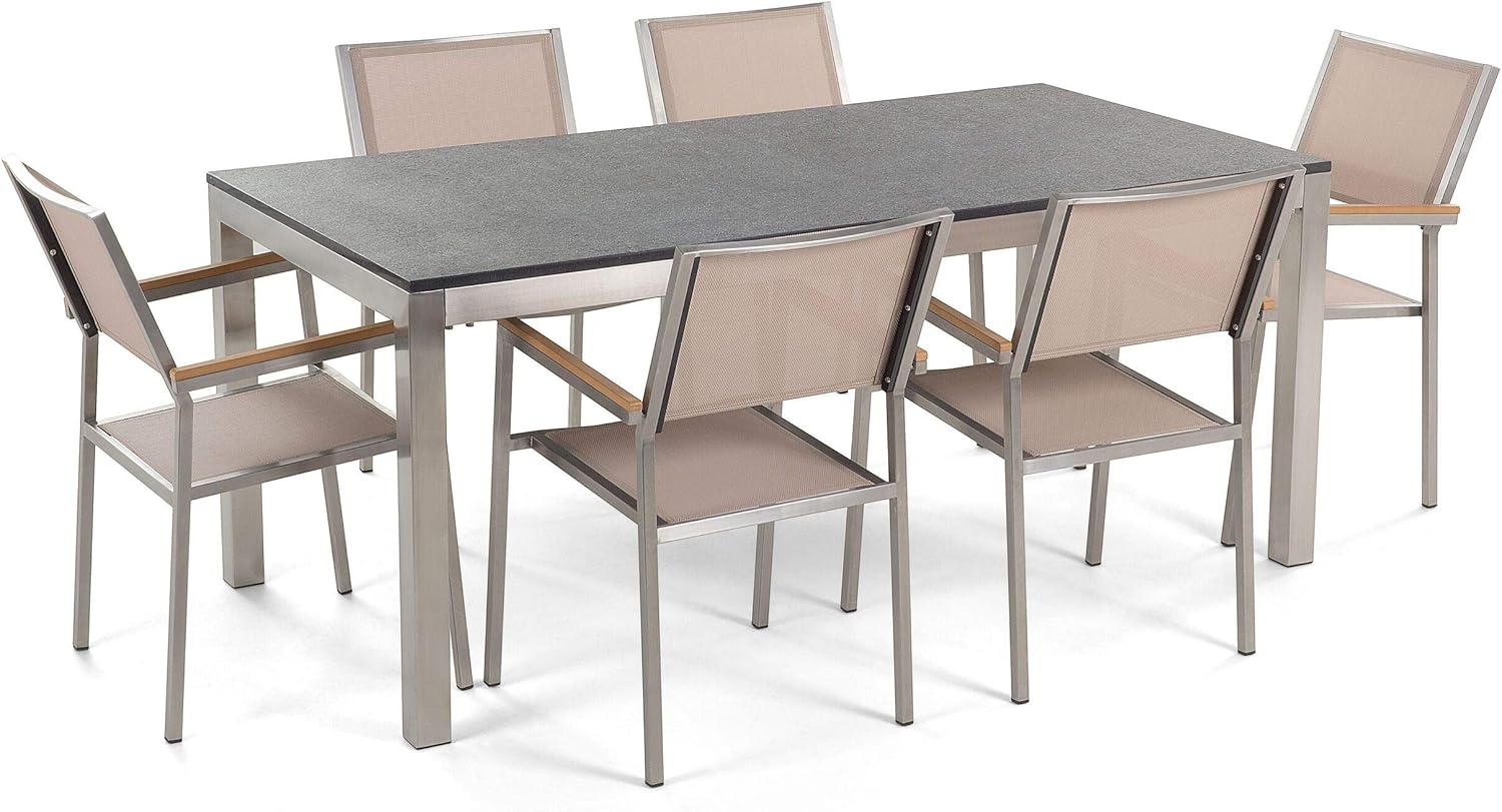 Set Di Tavolo E 6 Sedie Da Giardino In Acciaio Granito E Fibra Tessile Beige Piano Singolo Nero Fiammato 180cm Grosseto Beliani Amazon It Casa E Cucina