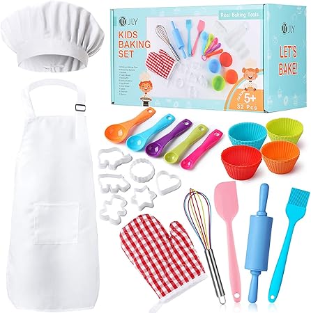Kit includes real cooking tools for kids and recipes. Your child can cook and bake with you using these fun, kid friendly kitchen tools. We believe the #1 way to raise healthy eaters is to create lots of opportunities for them to participate in the kitchen. Kit includes real cooking tools for kids and recipes.