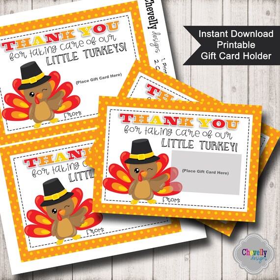 Instant Download Turkey Gift Card Printable Thanksgiving Etsy
