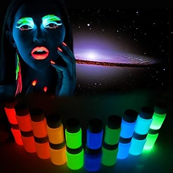 Brilla en la oscuridad cuerpo pintura, 10 colores piel cara pintura luminosa pintura Pigmento bares Super brillante pintado a mano polvo fluorescente pintura para los hombres, mujeres, niños: Amazon.es: Belleza